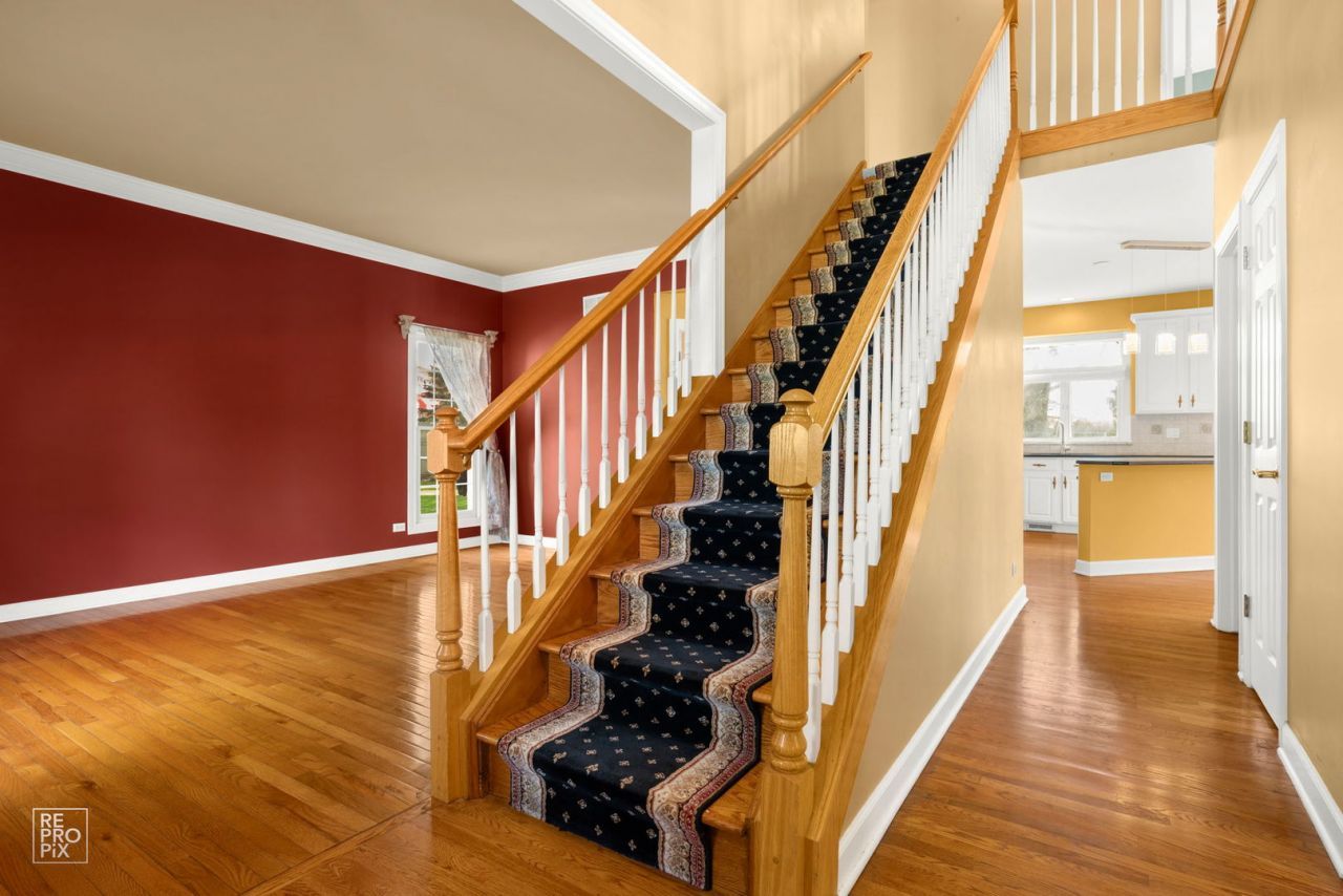 Situated on a elongated cul-de-sac in the Neuqua Valley High School attendance zone of Naperville, this spacious 4-bedroom home at 2820 Fairhauser Court offers an ideal blend of thoughtful interior updates and an expansive outdoor retreat. The main level is designed with an organic flow, featuring upgraded red oak hardwood floors and a modern lighting package installed in 2019 and 2023. Significant mechanical investments provide peace of mind for years to come, including a new furnace and humidifier (2021), a new AC unit (2025), and a water heater. Recent appliance upgrades also include a new refrigerator (2019) and a modern washer/dryer set. The second floor has a sizeable primary suite with private full bath and walk-in closet. 3 nicely sized bedrooms and a renovated bathroom complete the floor. The finished basement adds versatile living space, currently outfitted with custom bookshelves in the office/bedroom, a bar, and large gathering space. The transition between indoor and outdoor living is seamless via a new patio door installed in 2025. Outside, the property truly shines with an exceptionally large backyard designed for entertaining. The exterior was professionally landscaped in 2023 and is complemented by a comprehensive sprinkler system, a custom patio kitchen with extensive landscaping, and ambient landscape lighting. A new roof (2015) and a classic brick mailbox round out the impressive curb appeal. Hard to find features like a spacious three-car garage with new doors and openers, pie shaped lot, and northeast facing home make this an excellent choice in one of Naperville's most desirable neighborhoods.