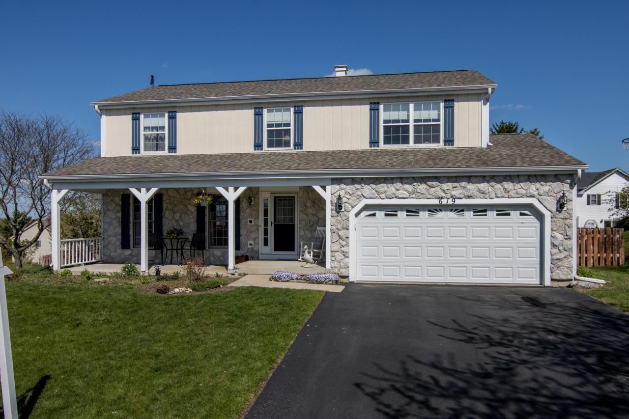 This well-kept Southwick model home with brand new roof (2023) with transferrable warranty, located on a premium lot with lovely perennial gardens, in the High Hill Farms subdivision, boasts an extra-large front porch to relax on, 4 bedrooms, 2-1/2 bathrooms, 2,217 square feet of living space, and an attached 2 car garage. The spacious primary bedroom features a grand cathedral ceiling, ceiling fan, walk-in closet, and a private bathroom. The kitchen, foyer, and powder room have been updated with luxury vinyl plank flooring. The family room has crown molding, hardwood flooring and a sliding glass door that brings you to a back yard oasis with a paver brick patio and an expansive, fenced yard. Each of the bedrooms has engineered hardwood flooring. The washer and dryer are on the second floor for ease of access. The unfinished basement is freshly painted and has a concrete crawl space for extra storage. Recent updates include water heater (2017), high efficiency furnace and air conditioner (2017), and dishwasher (2021). The location of this beautiful home is ideal; within 2 blocks of neighborhood park and walking trail, close proximity to shopping on Randall Road, convenient access to the I-90 tollway, and within ~8 miles of 2 Metra stations. Schedule a showing today!